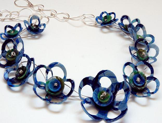 Since then she’s developed various creative projects from her first business Pulpwork, where recycled paper was used to create mirrors, wall pieces, bowls and vessels to her current business bags2riches which involves the production of lights, artwork and jewellery from recycled plastics bags.
